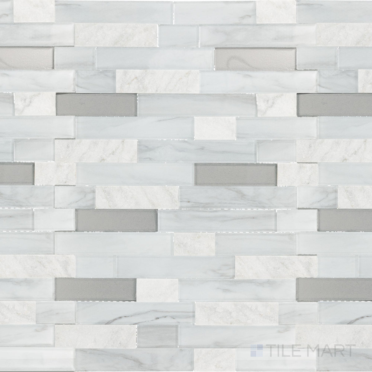Perfit Mosaix White Carrara & Glass Random Linear Split Face Carrara Mosaic