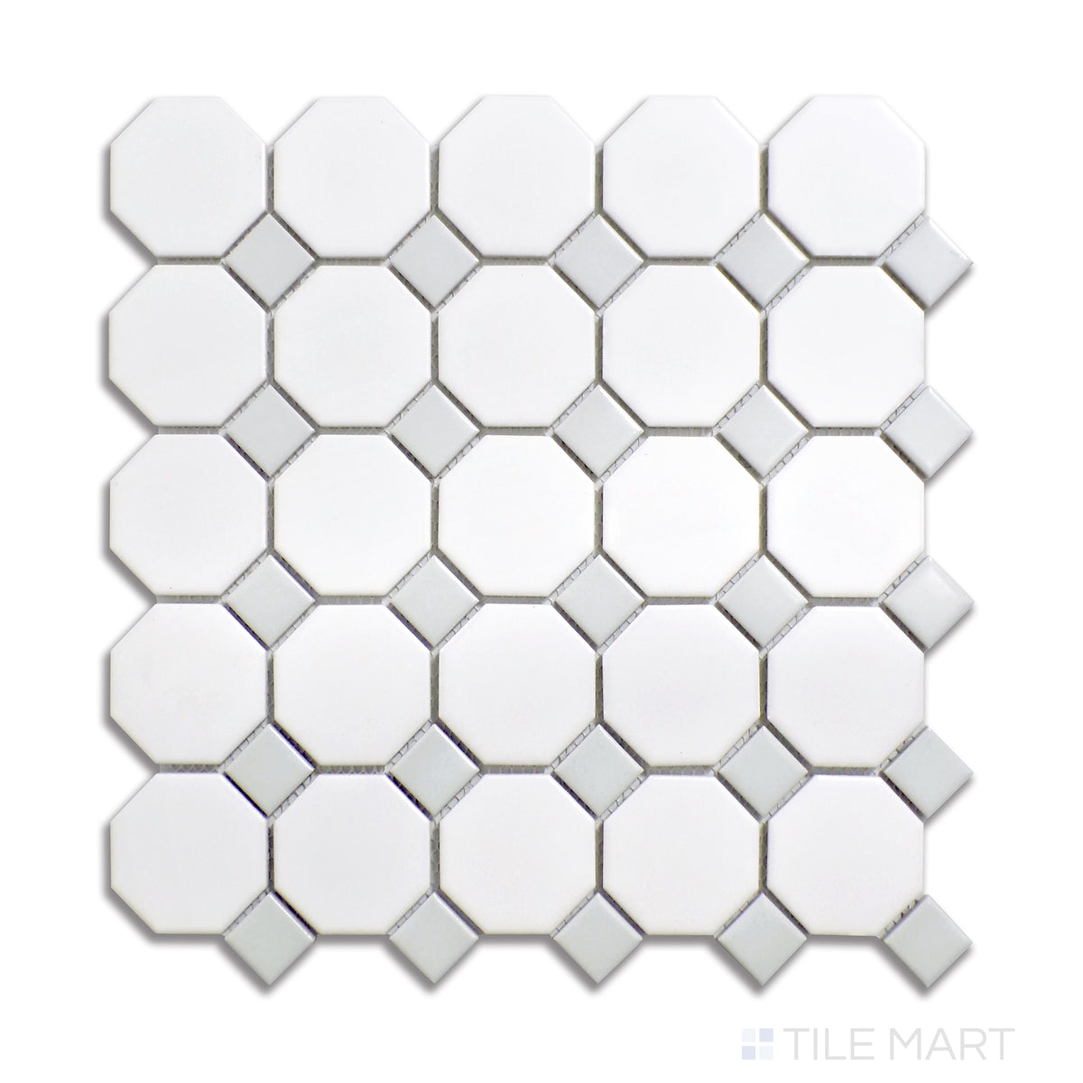 Metro White With Gray Dot 2" Octagon Matte Mosaics
