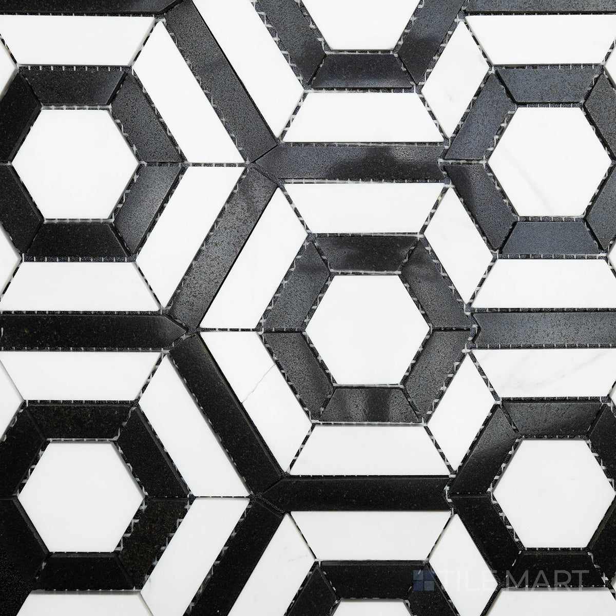 Rockart Black & White Hexagon Polished Ariston Mosaic