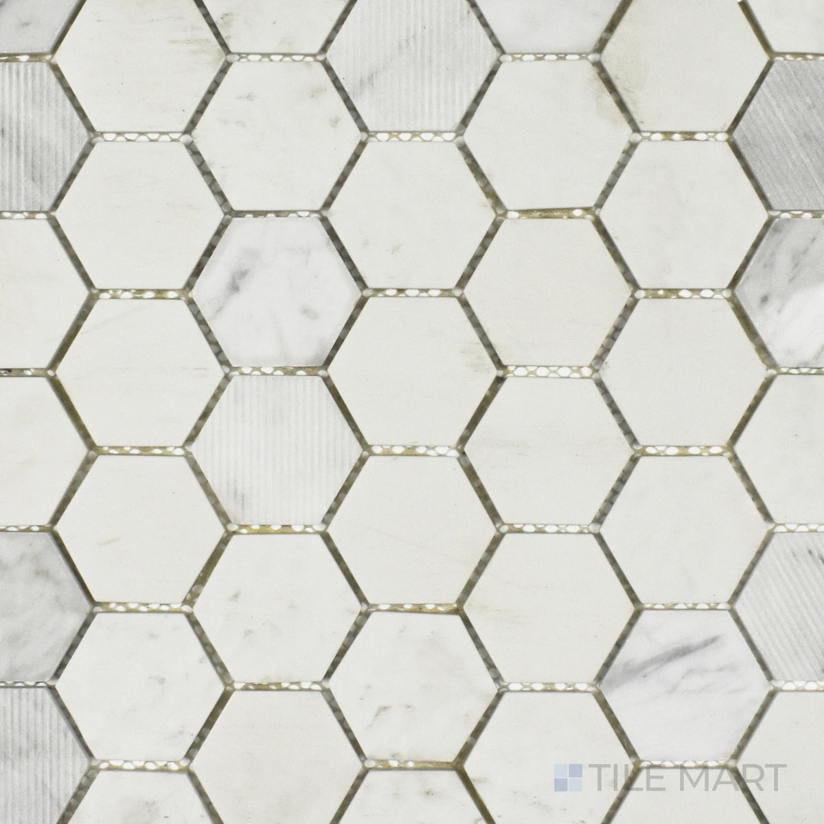Rockart Carrara Hexagon Matte And Polished Marble, Recycled Glass Mosaic