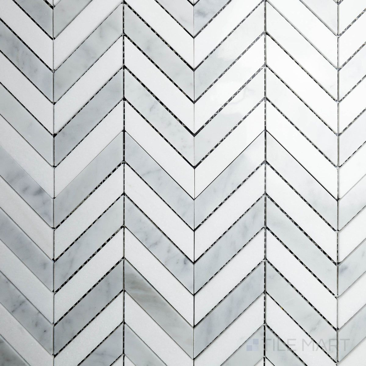 Rockart White & Gray Chevron Polished Thassos, Carrara Mosaic