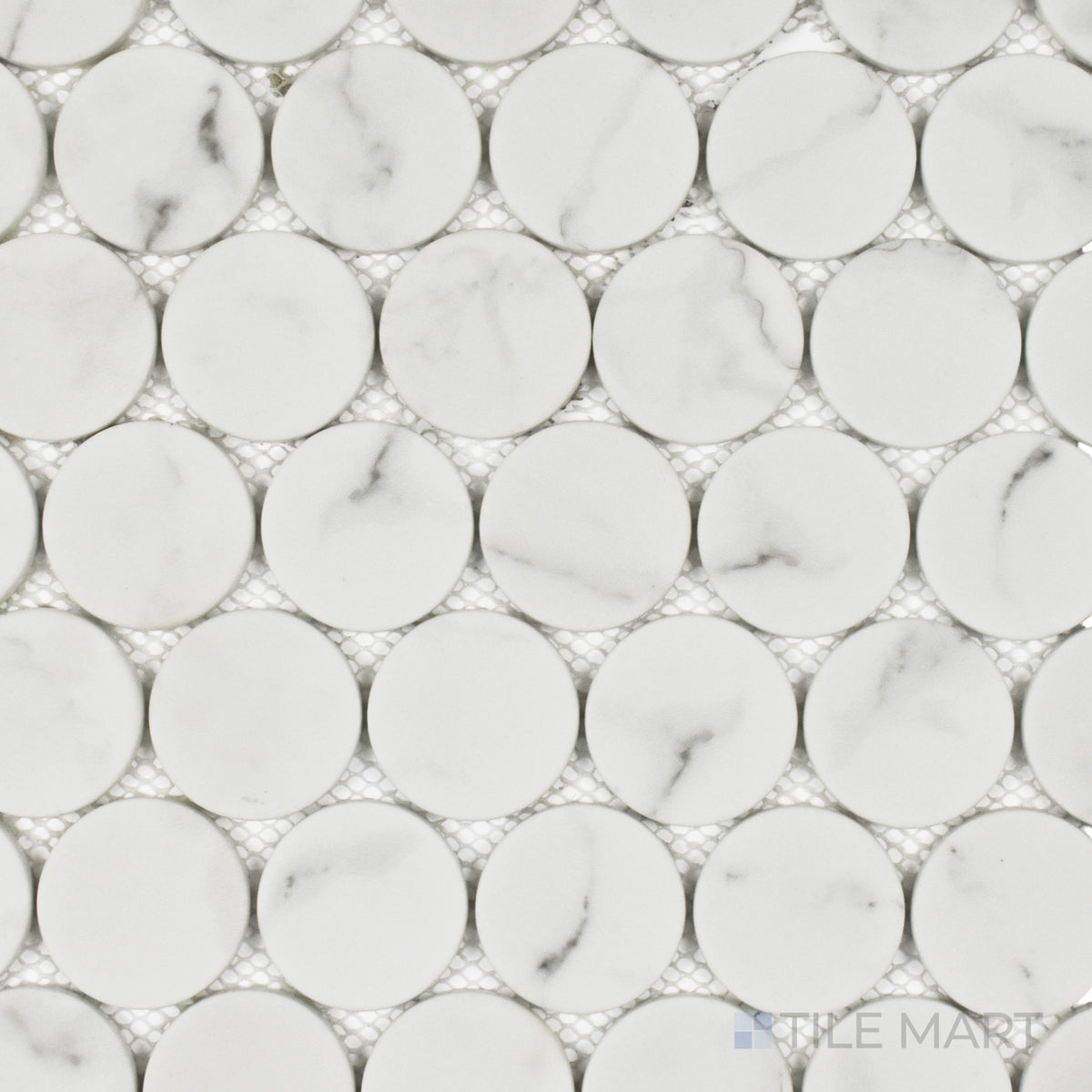 Crisp and elegant, Rockart White Statuary Dots Mosaic offers refined matte marble dots ideal for classic spaces with a fresh, timeless feel.