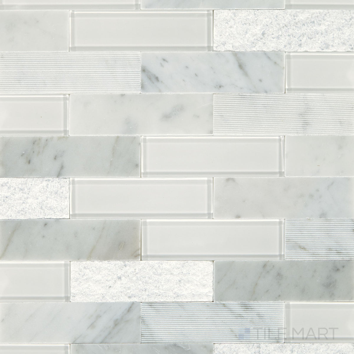 Simplystick Mosaix Carrara White And Glass Blend Honed And Polished Marble, Limestone Mosaic