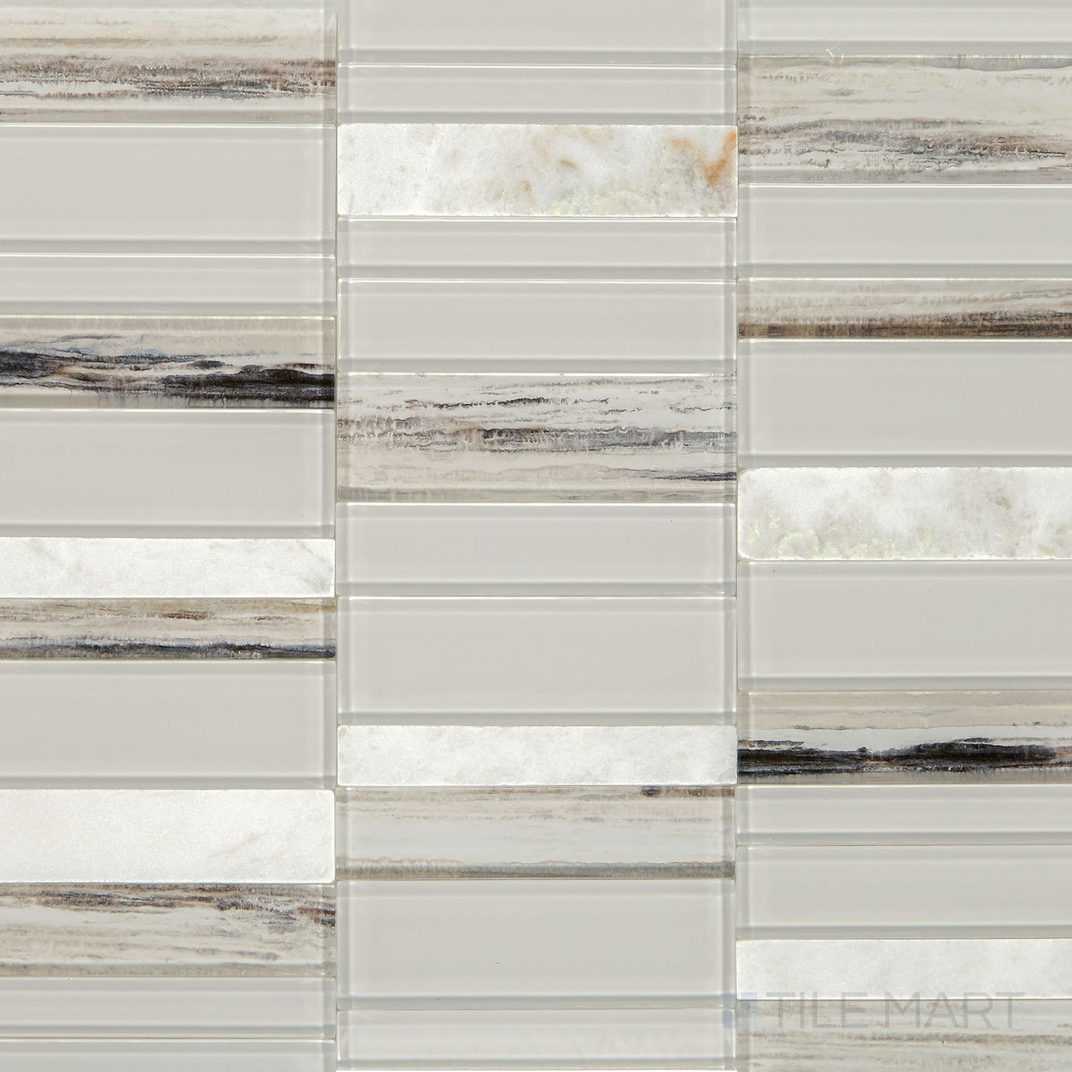 Simplystick Mosaix Daphne White And Glass Blend Polished Marble, Limestone Mosaic
