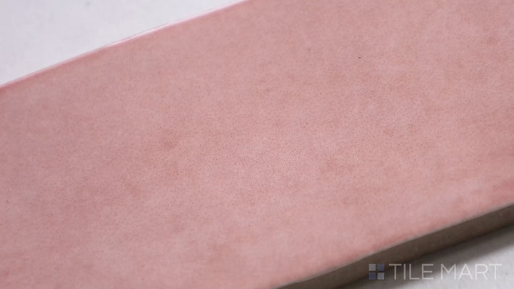 Video highlighting Soco Pink 2X6 Glossy Porcelain Tile. A vibrant pink tile with a high-gloss shine, ideal for contemporary and playful spaces.