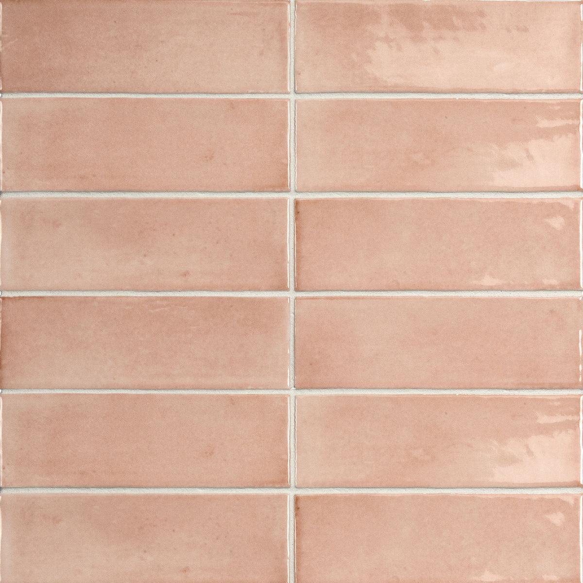 Soco Pink 2x6 glossy porcelain tile reflects light beautifully and creates a cheerful, eye-catching accent.