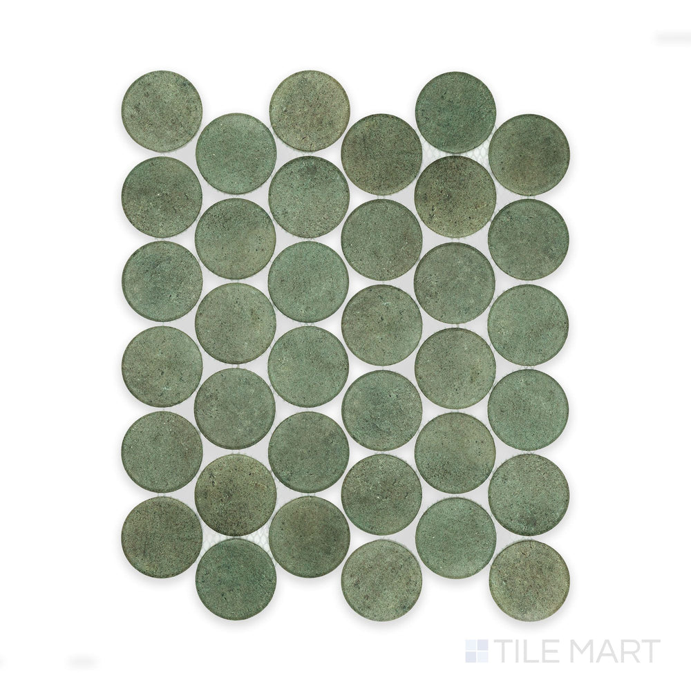 Stage Forest 2" penny round matte porcelain mosaic delivers a nature-inspired green hue with classic circular design.