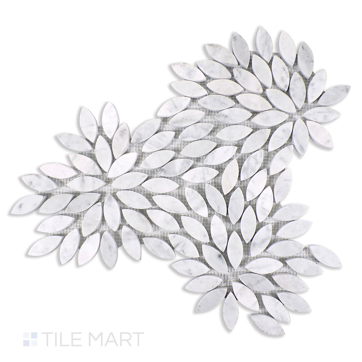 The delicate veining of Carrara marble meets sculpted floral charm in this polished mosaic—ideal for romantic and refined interior accents.