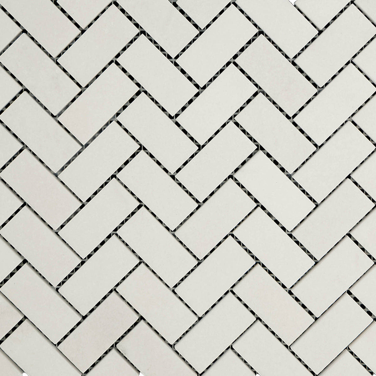 Thassos White Marble 1X2 Herringbone Honed Mosaic