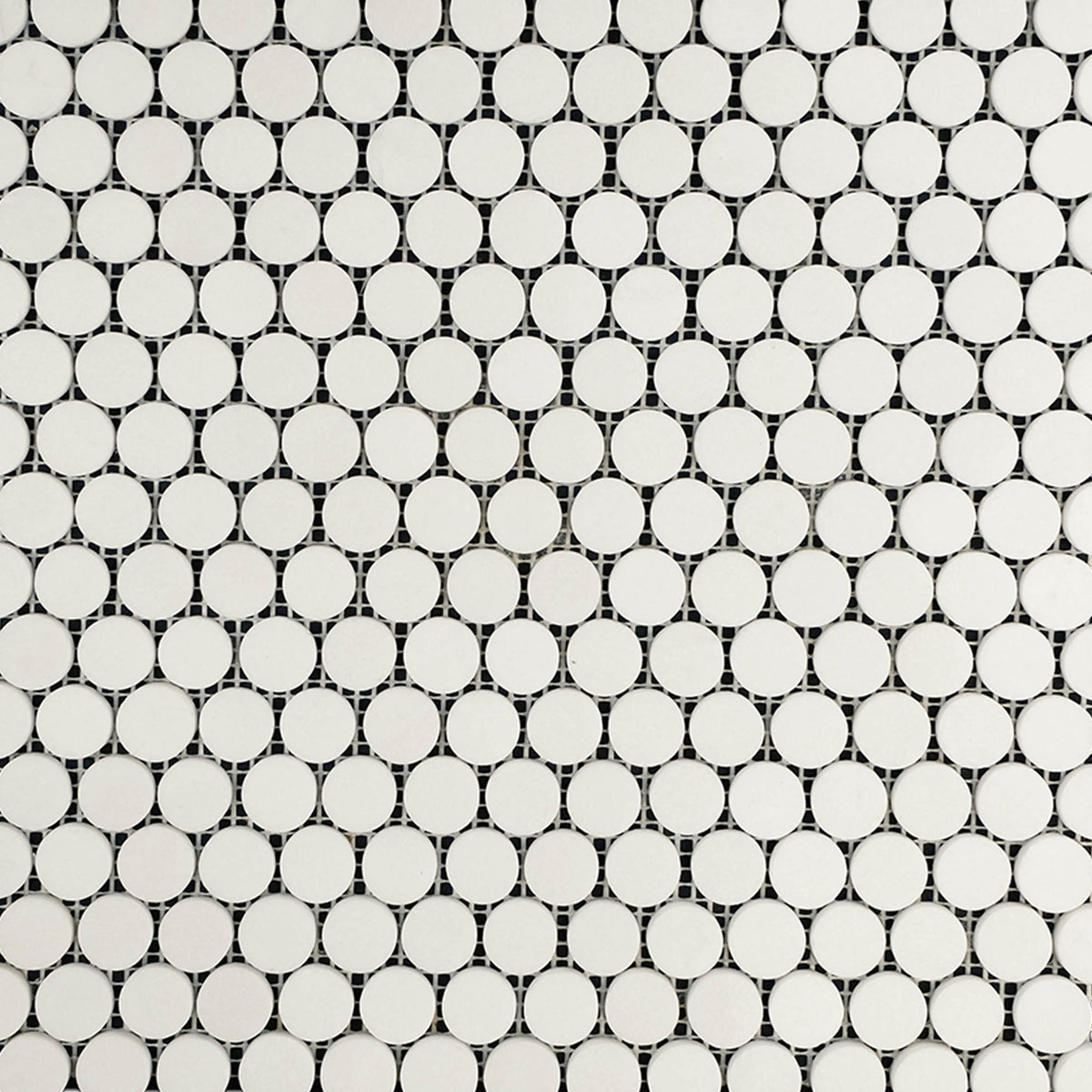 Featuring a polished surface that enhances the natural elegance of marble, the Thassos White Penny Round Polished Marble Mosaic adds a sleek, luxurious touch. Its 11-1/4x11-7/8 inch design is ideal for modern and classic interiors alike.