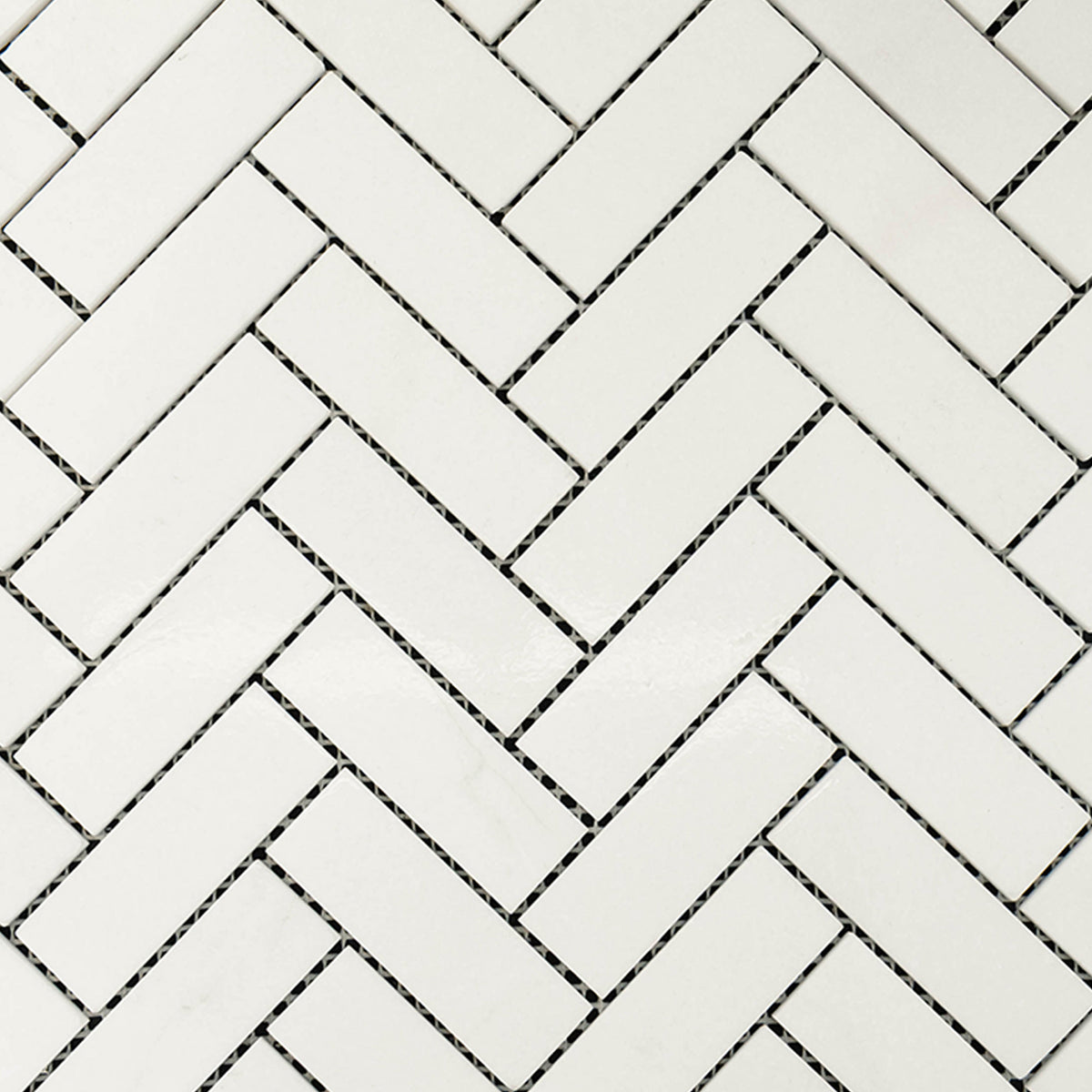 Thassos White Marble 1X3 Herringbone Polished Mosaic