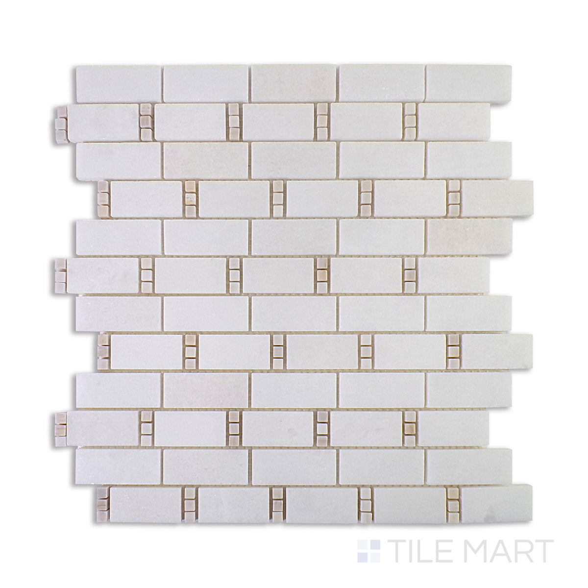 The Finish Line Pale Beige Subway polished marble mosaic pairs clean lines with a soft beige tone for a balanced, classic finish.