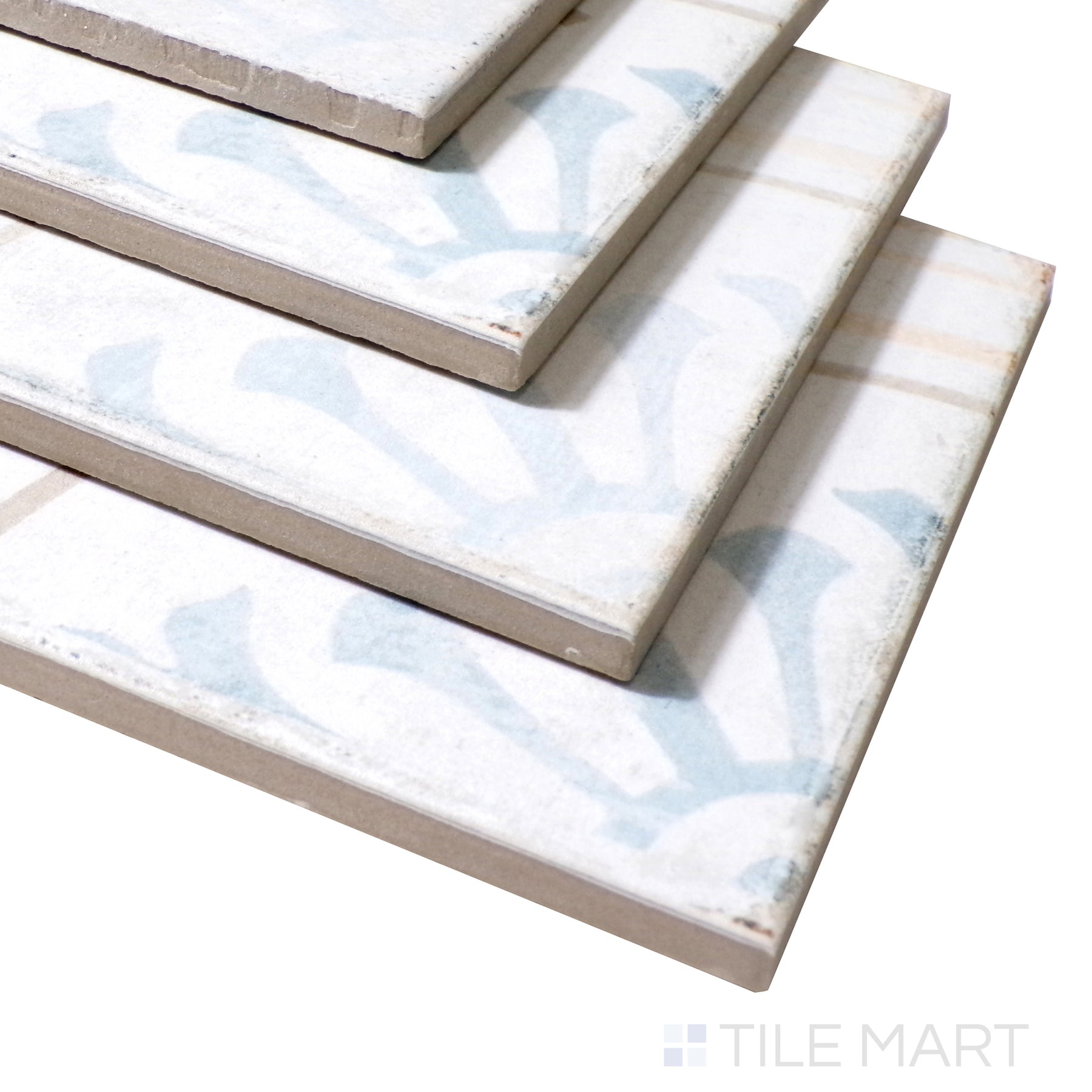 A corner shot of the Barcelona Décor Raval 6x6 matte porcelain tile reveals its intricate motifs and soft matte surface, creating a timeless and sophisticated design element.
