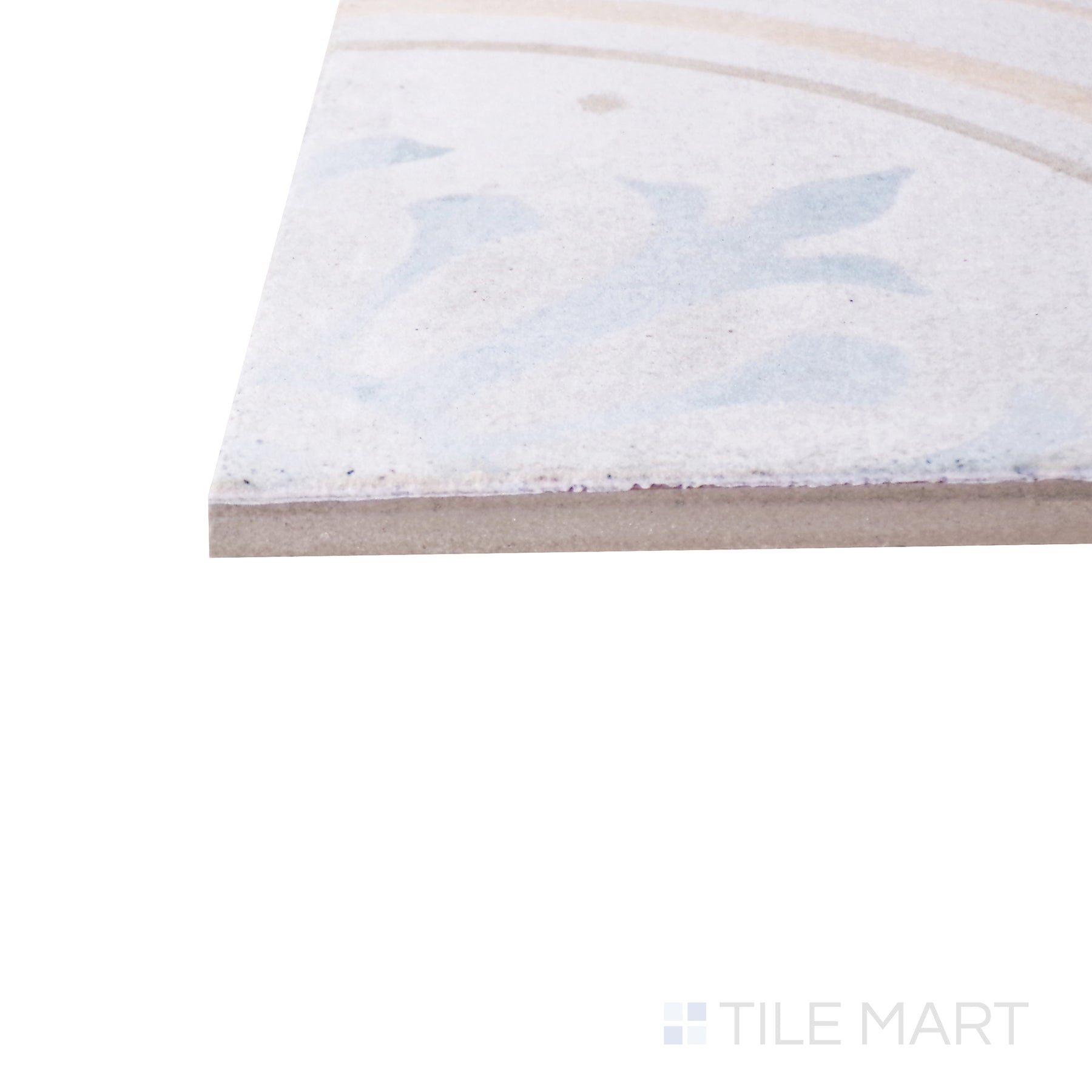 • A corner shot of the Barcelona Décor Raval 6x6 matte porcelain tile reveals its intricate motifs and soft matte surface, creating a timeless and sophisticated design element.