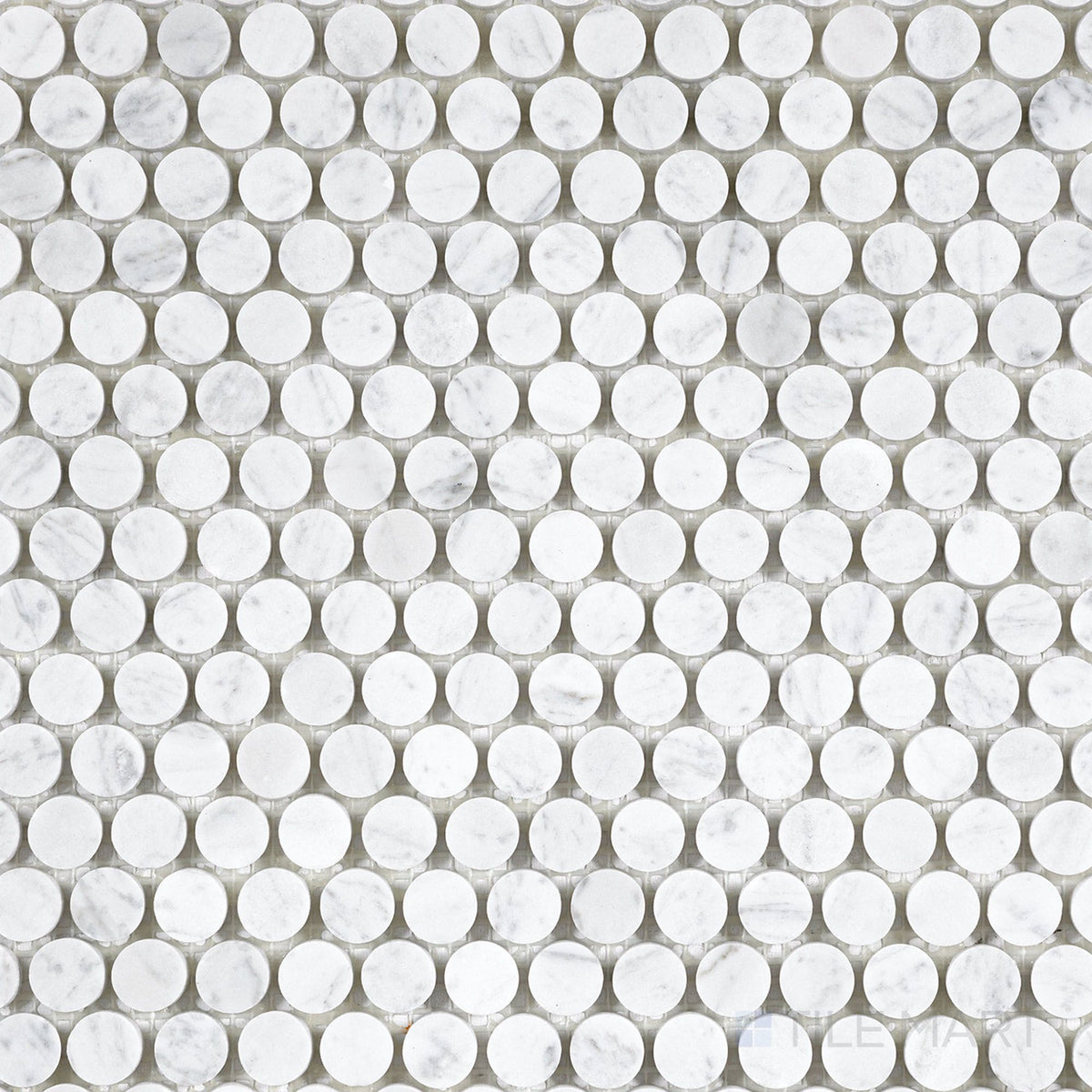 A playful yet timeless design, this honed penny round White Carrara marble mosaic brings classic charm with a modern touch. The 10-3/4x11-1/2 sheet format enhances backsplashes, floors, and shower walls with a subtle, elegant texture.