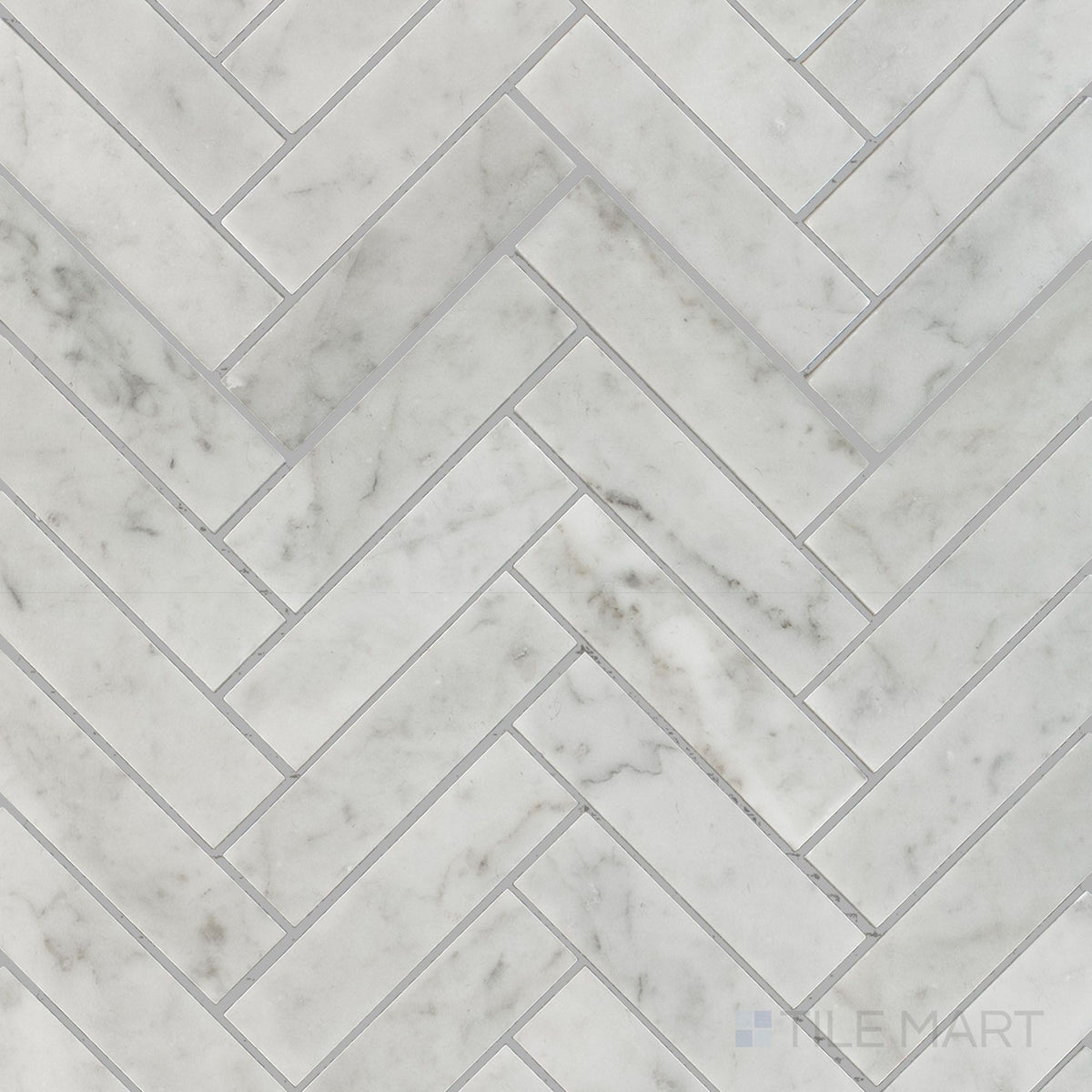 White Carrara Marble 1X4 Herringbone Honed Mosaic