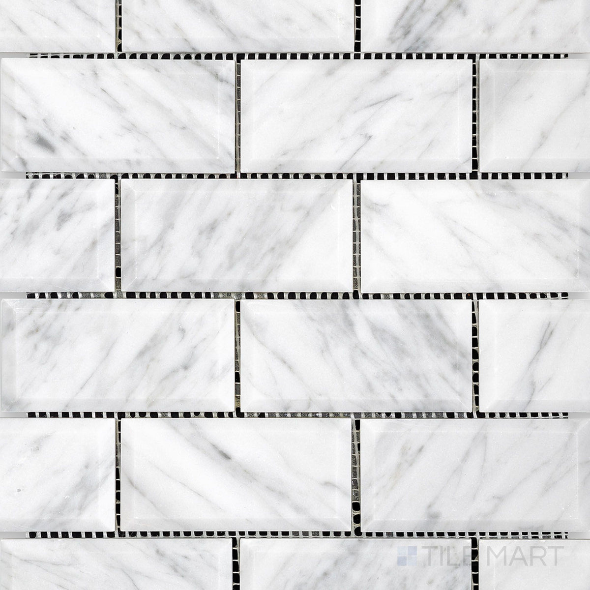 White Carrara Marble 2X4 Brick Beveled Honed Mosaic