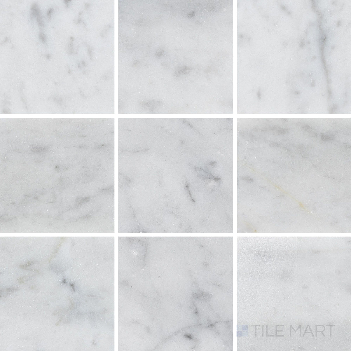 This 4x4 honed White Carrara marble tile showcases a soft, matte finish with natural veining that enhances its timeless appeal. The square format is ideal for flooring, feature walls, or intricate tile patterns in kitchens and bathrooms.