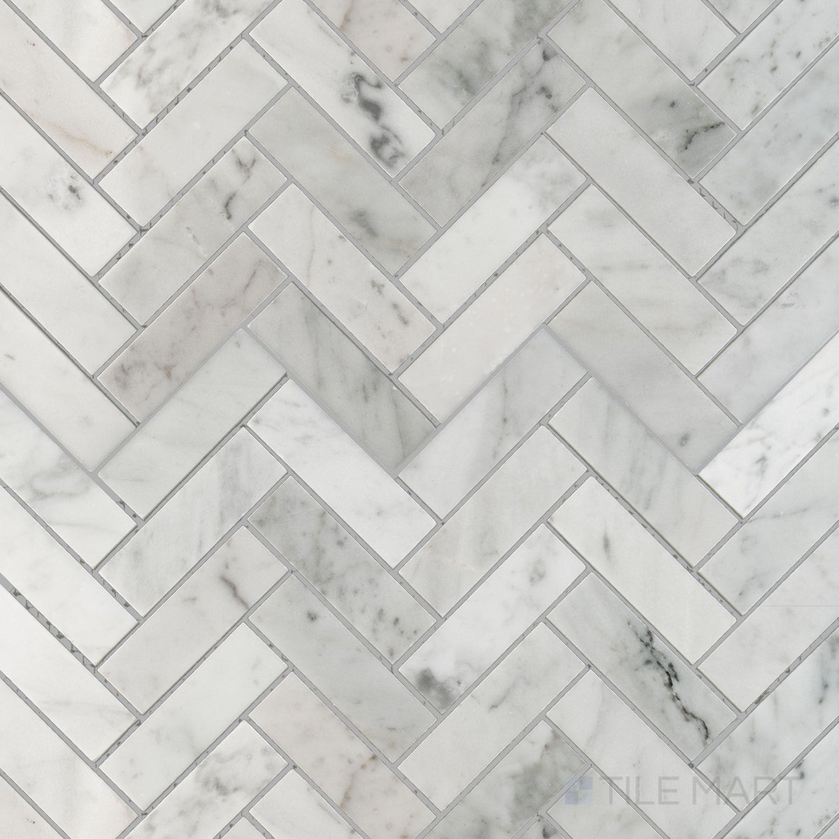 White Carrara Marble 1X3 Herringbone Polished Mosaic