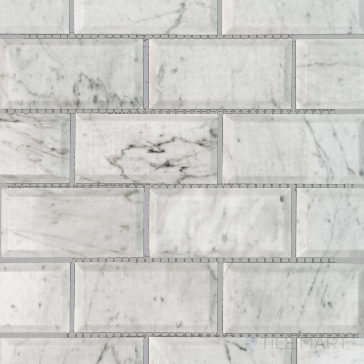 White Carrara Marble 2X4 Brick Beveled Polished Mosaic