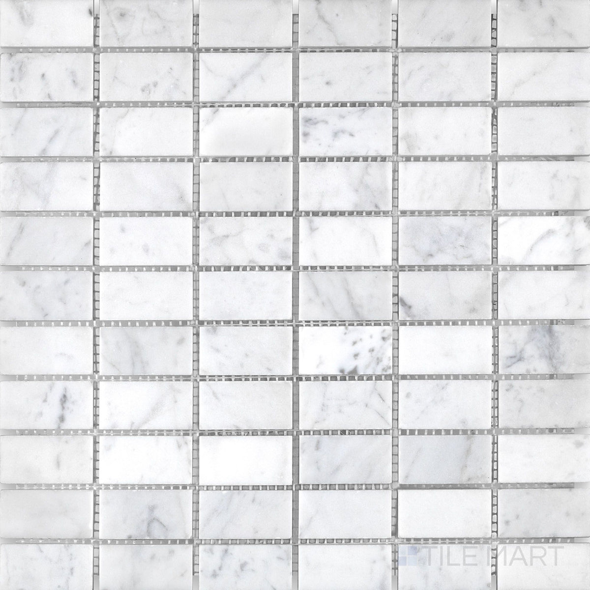 A polished finish enhances the crisp lines of this 1x2 stacked mosaic, reflecting light beautifully across the White Carrara marble surface. The 12x12 mesh backing ensures easy installation for seamless wall applications and backsplashes.