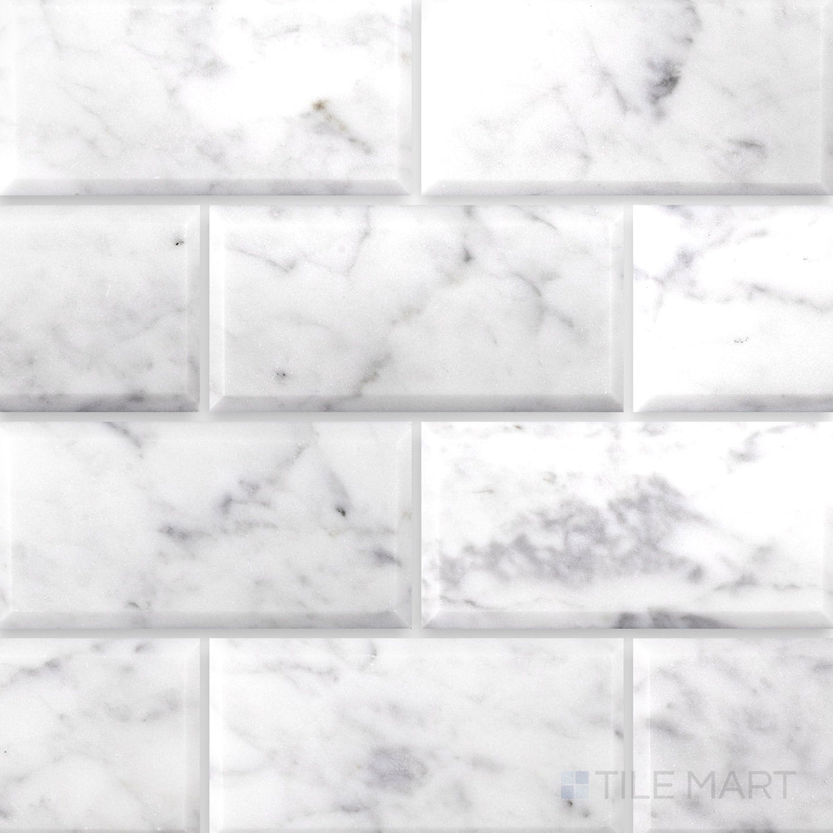 The 3x6 polished White Carrara marble tile delivers a high-gloss surface that beautifully reflects light, emphasizing the intricate gray veining. Ideal for elegant wall installations, this tile adds a sophisticated touch to any modern or traditional setting.